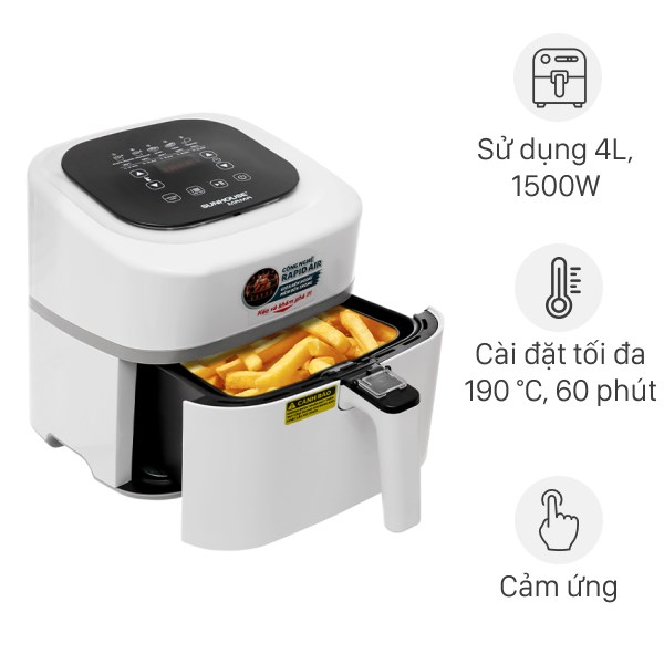 Nhiệt độ tối đa 200 độ C, hẹn giờ 0 - 60 phút.